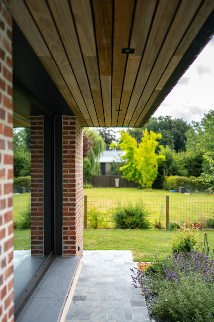 • Le choix du système de bardage Techniclic® : Les clients souhaitaient initialement un bardage en clin. C’est grâce à plusieurs visites de chantiers dans la région (notamment le bardage du restaurant Gur à Mouscron) que les clients ont été convaincus d’opter pour l’aspect esthétique du claire-voie en lame de 10cm et joint de 10mm, le tout en fixation cachée. La technicité et la durabilité des systèmes Vetedy n’ont fait qu’accentuer le choix des décideurs de ce projet vers le système Techniclic®.